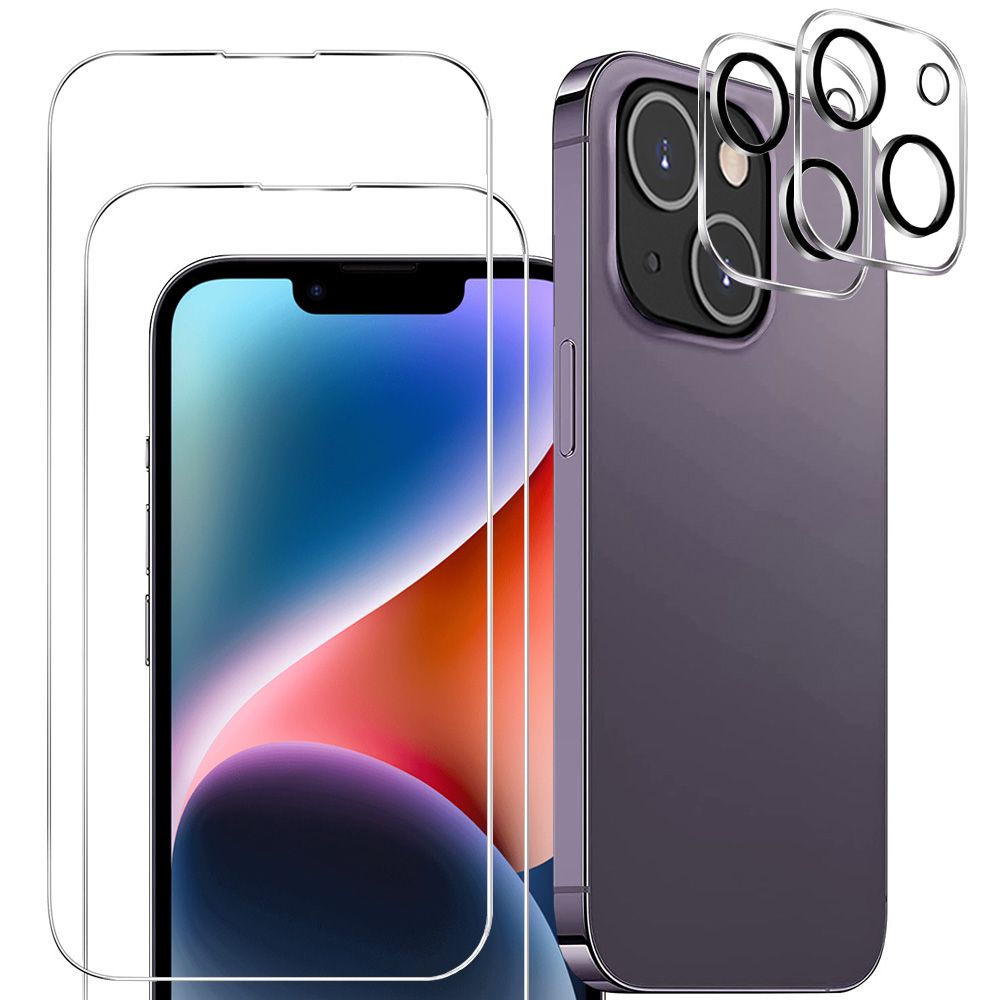 HOHE QUALITÄT: Ultraklarer, hochwertiger und kratzfester Handyschutz für Display sowie Rückkamera Ihres Apple iPhone 14 aus 9H Echtglas