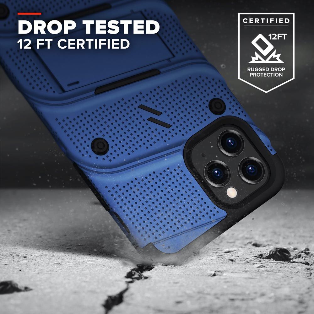 HOHE QUALITÄT: Sehr hochwertige Premium Handyhülle der Marke ZIZO für Apple iPhone 12 inklusive Schutzglas, Holster & Gürtelclip