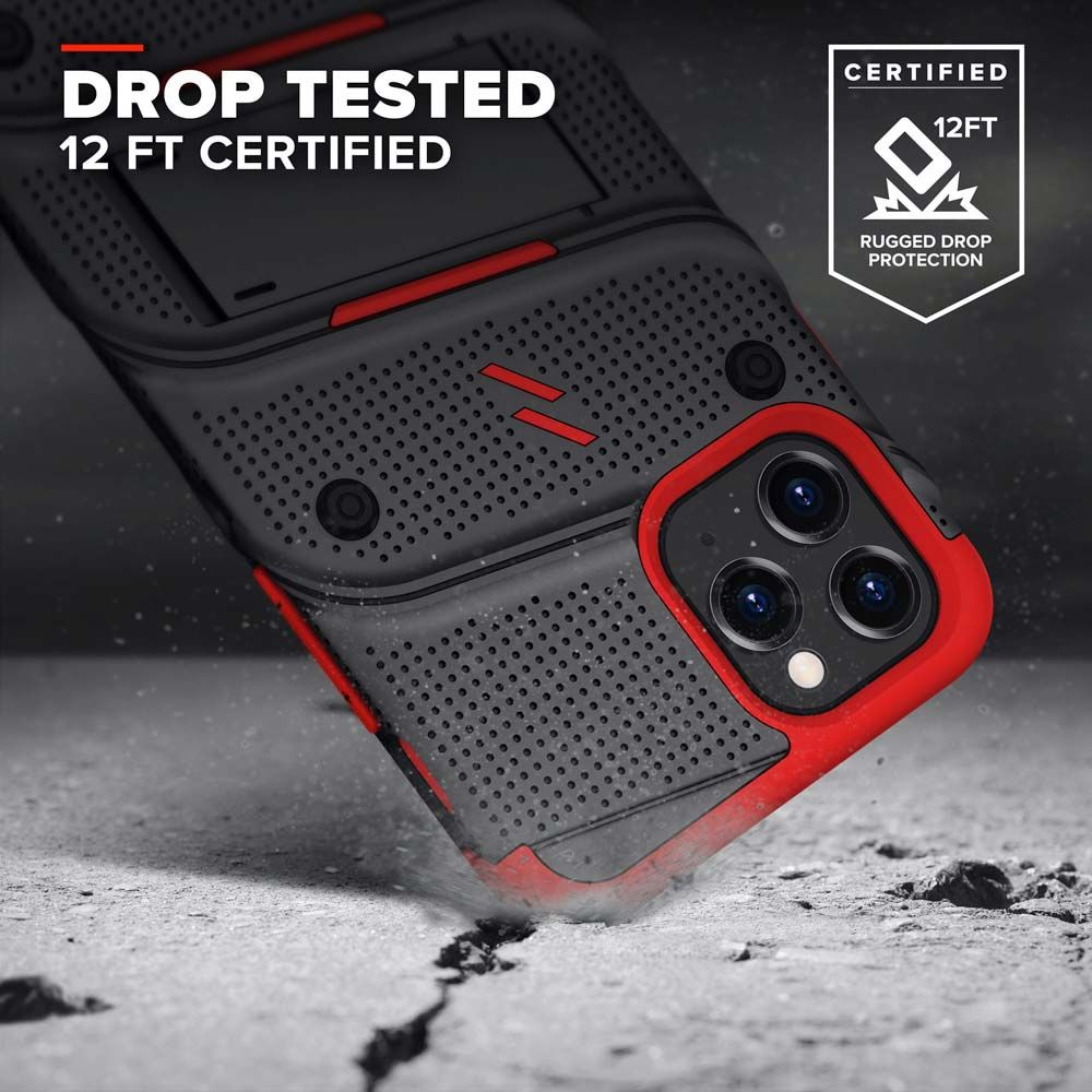 HOHE QUALITÄT: Sehr hochwertige Premium Handyhülle der Marke ZIZO für Apple iPhone 12 inklusive Schutzglas, Holster & Gürtelclip