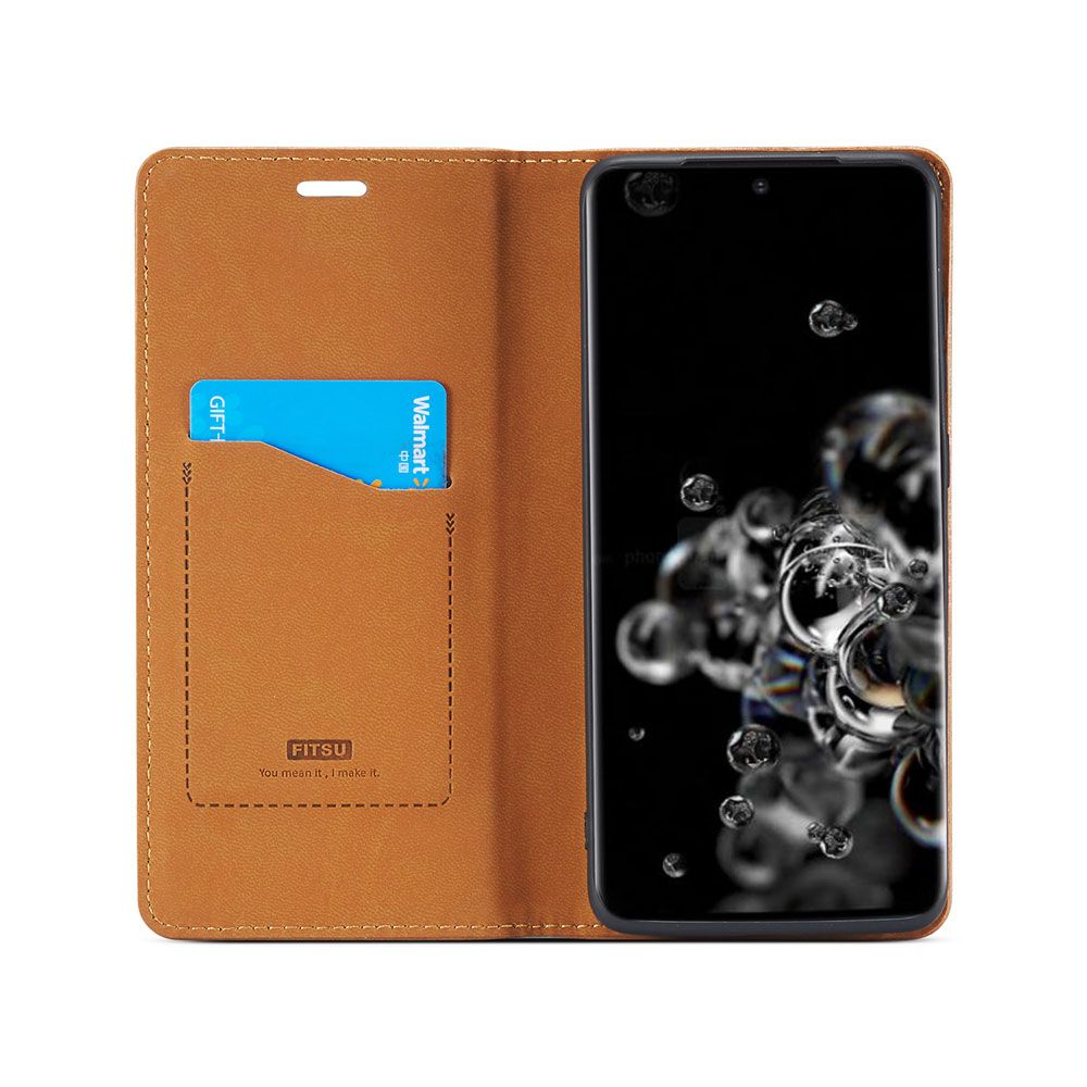 AUFSTELL- & GELDBÖRSENFUNKTION: Die Fitsu Galaxy S20 Ultra Hülle verfügt über eine praktische Stand-View-Funktion zum Aufstellen. Das Etui verfügt zudem im seitlichen Klappdeckel über ein Karten- bzw. ein Geldfach