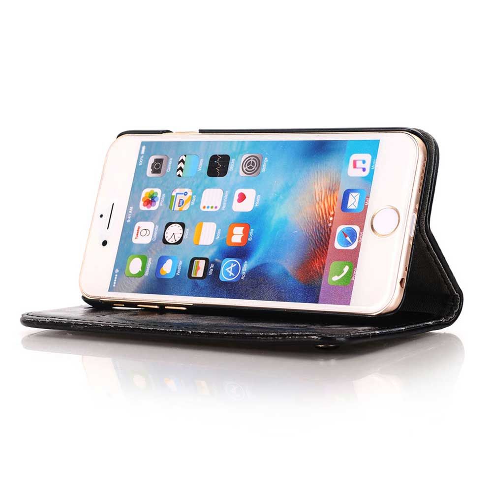 HOHE QUALITÄT: Sehr hochwertige und handverarbeitete Handyhülle für Apple iPhone 6 Plus / 6s Plus, mit einer schwarzen Halteschale aus Silikon im Inneren sowie Magnetverschluss