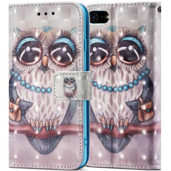 HOHE QUALITÄT: Sehr schicke Handyhülle mit 3D Effekt für Apple iPhone SE 2020 aus Kunstleder mit Eulen Motiv sowie Magnetverschluss