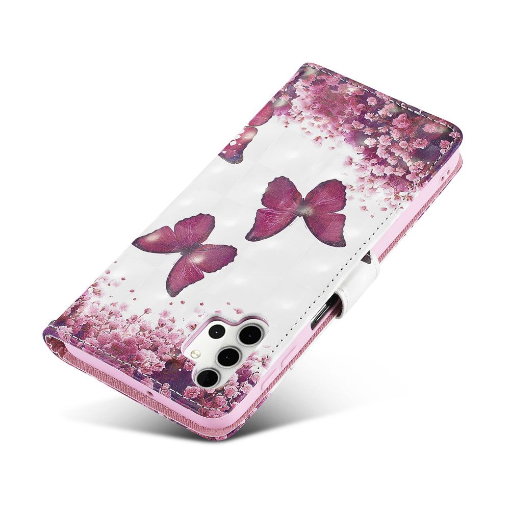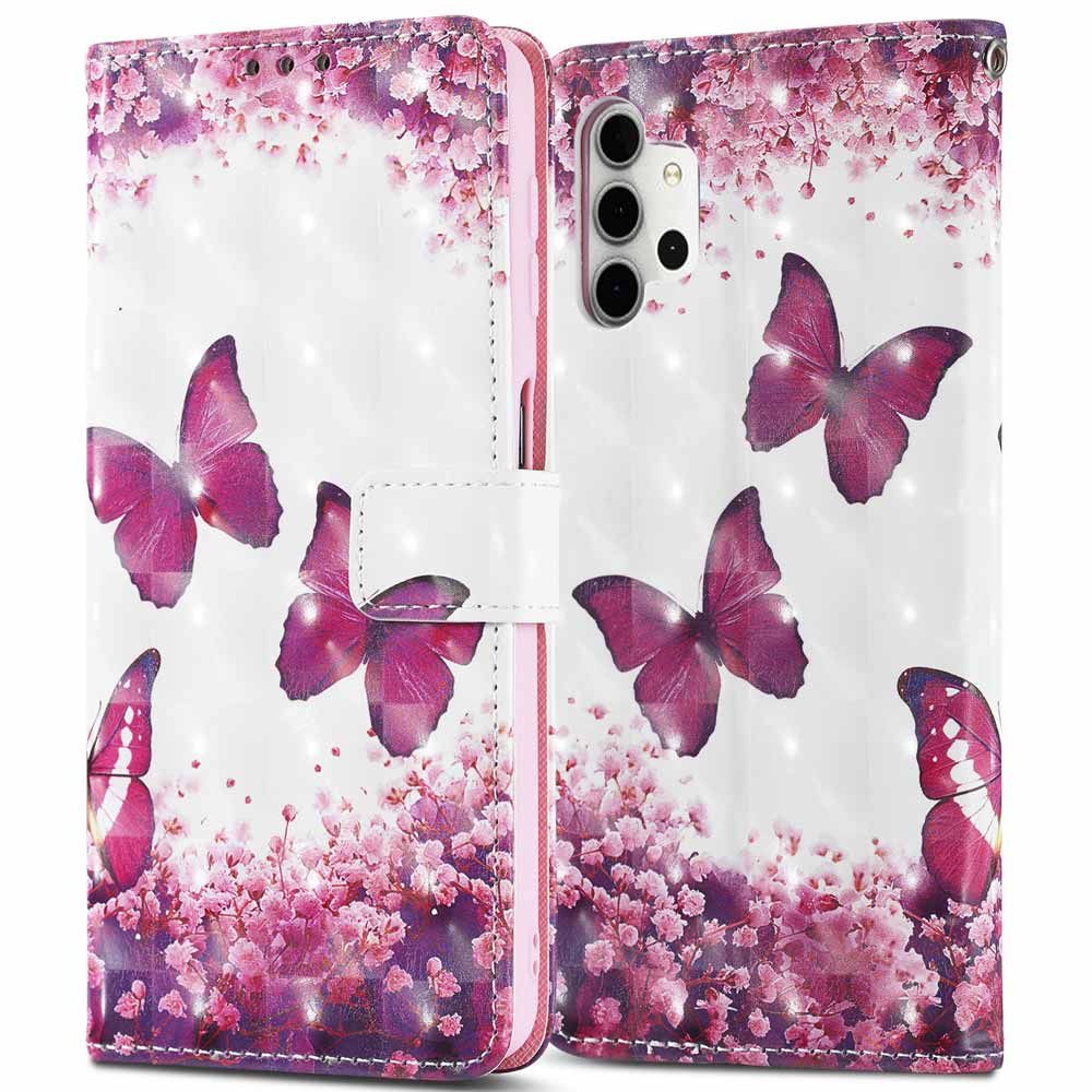 HOHE QUALITÄT: Sehr schicke Handyhülle mit 3D Effekt für Samsung Galaxy A32 aus Kunstleder mit Schmetterling Motiv sowie Magnetverschluss