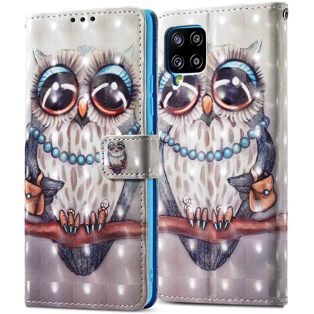 HOHE QUALITÄT: Sehr schicke Handyhülle mit 3D Effekt für Samsung Galaxy A42 aus Kunstleder mit Eulen Motiv sowie Magnetverschluss