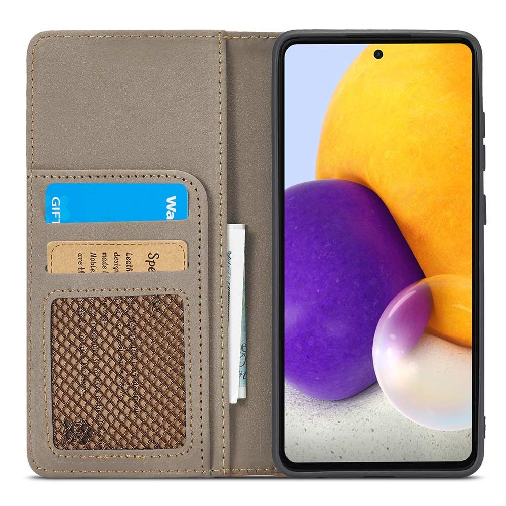 HOHE QUALITÄT: Sehr hochwertige und handverarbeitete Handytasche für Samsung Galaxy A72 der Marke Fitsu, mit toller Optik und hoher Funktionalität