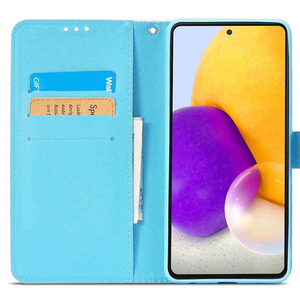 HOHE QUALITÄT: Sehr schicke Handyhülle mit 3D Effekt für Samsung Galaxy A72 aus Kunstleder mit Eulen Motiv sowie Magnetverschluss