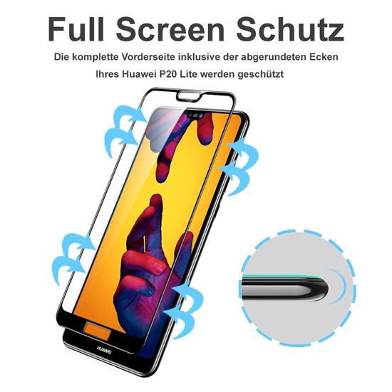 Full Cover Panzerglasfolie für Huawei P20 Lite - Schwarz