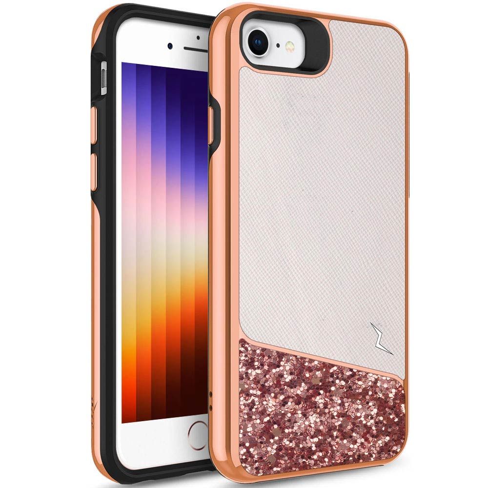MATERIAL: Die 100%ig für iPhone SE 2022 passgenaue Hülle besteht aus einer Innenschale aus flexiblem Material sowie einer robusten Rückseite mit Glitzer Elementen