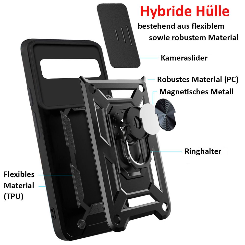 HOHE QUALITÄT: Robuste Outdoor Handyhülle für Google Pixel 6 mit 360° drehbaren Ringhalter sowie verschiebbarer Kameraabdeckung für optimalen Schutz des Handy