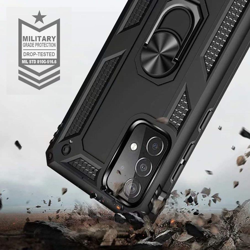 HOHE QUALITÄT: Sehr hochwertige, robuste Double Layer Handyhülle für Samsung Galaxy A42 mit schicker Optik sowie 360° drehbaren Ringhalter