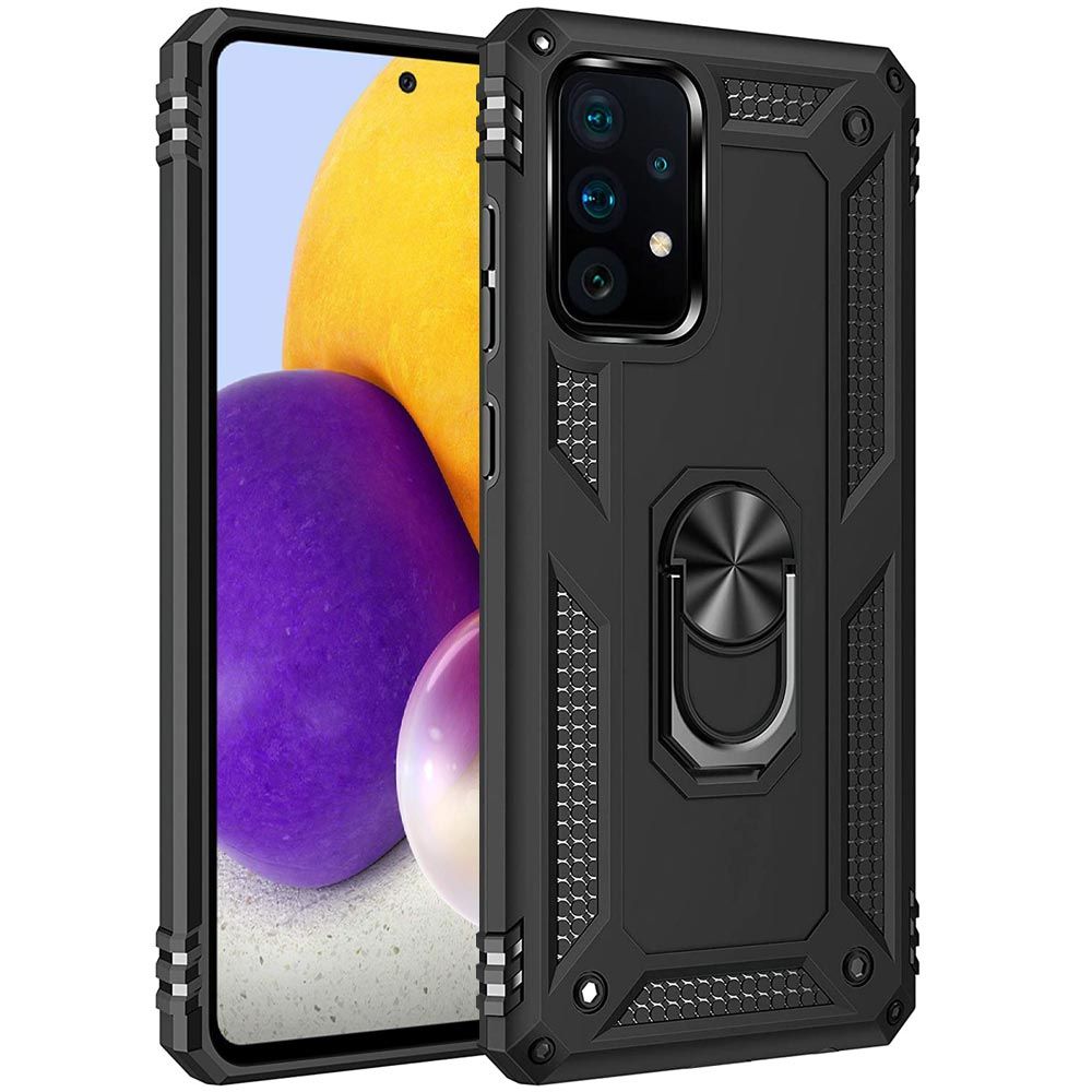 HOHE QUALITÄT: Sehr hochwertige, robuste Double Layer Handyhülle für Samsung Galaxy A72 mit schicker Optik sowie 360° drehbaren Ringhalter