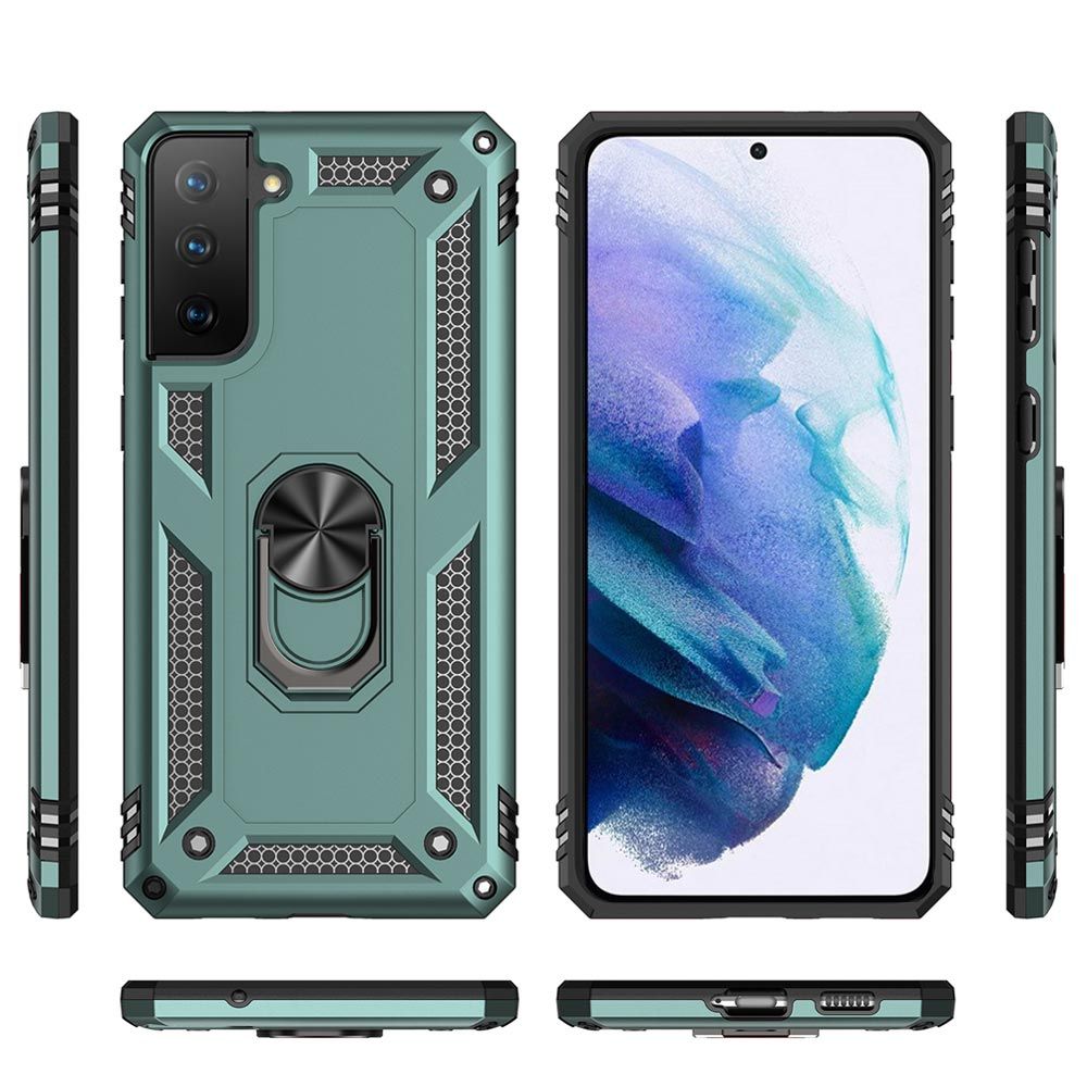 HOHE QUALITÄT: Sehr hochwertige, robuste Double Layer Handyhülle für Samsung Galaxy S21 Plus mit schicker Optik sowie 360° drehbaren Ringhalter
