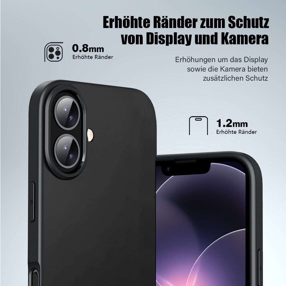 OPTIMALER SCHUTZ: Das Case hat einen erhöhten Rand auf der Vorderseite sowie um die Kameraaussparung auf der Rückseite, dadurch wird das Display sowie die Kamera Ihres iPhone 17e besonders geschützt