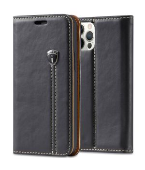 HOHE QUALITÄT: Sehr hochwertige und handverarbeitete Handytasche für Apple iPhone 12 Mini der Marke Fitsu, mit toller Optik in edlem Design sowie Magnetverschluss