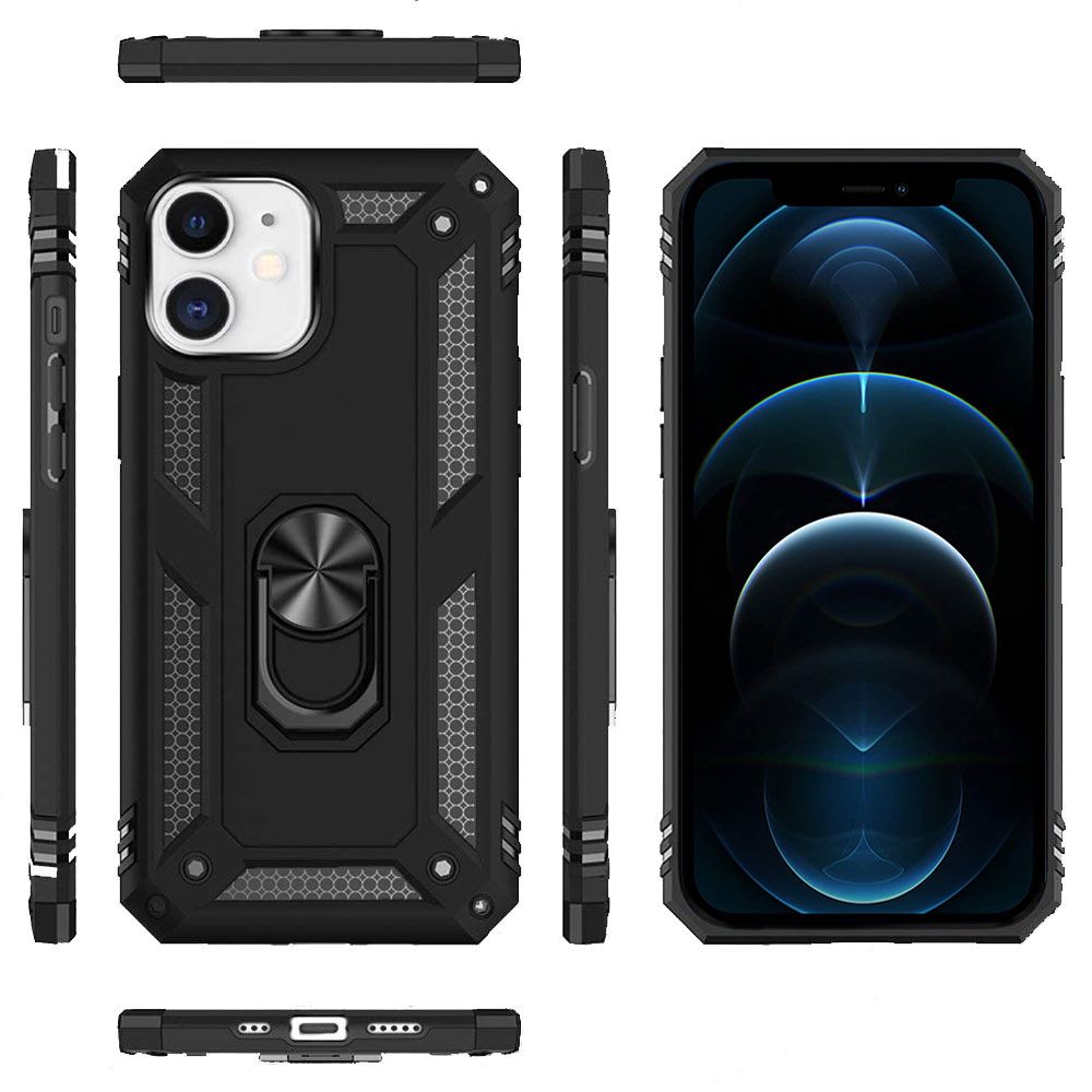 HOHE QUALITÄT: Sehr hochwertige, robuste Double Layer Handyhülle für Apple iPhone 12 Pro Max mit schicker Optik sowie 360° drehbaren Ringhalter