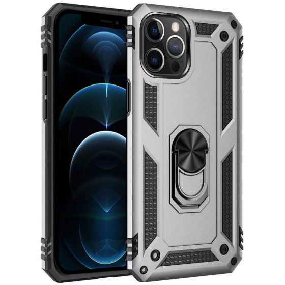 HOHE QUALITÄT: Sehr hochwertige, robuste Double Layer Handyhülle für Apple iPhone 12 Pro mit schicker Optik sowie 360° drehbaren Ringhalter