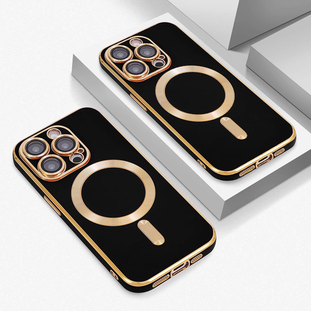 Hülle für iPhone 15 Pro MagSafe kompatibel mit Kameraschutz - Schwarz / Gold