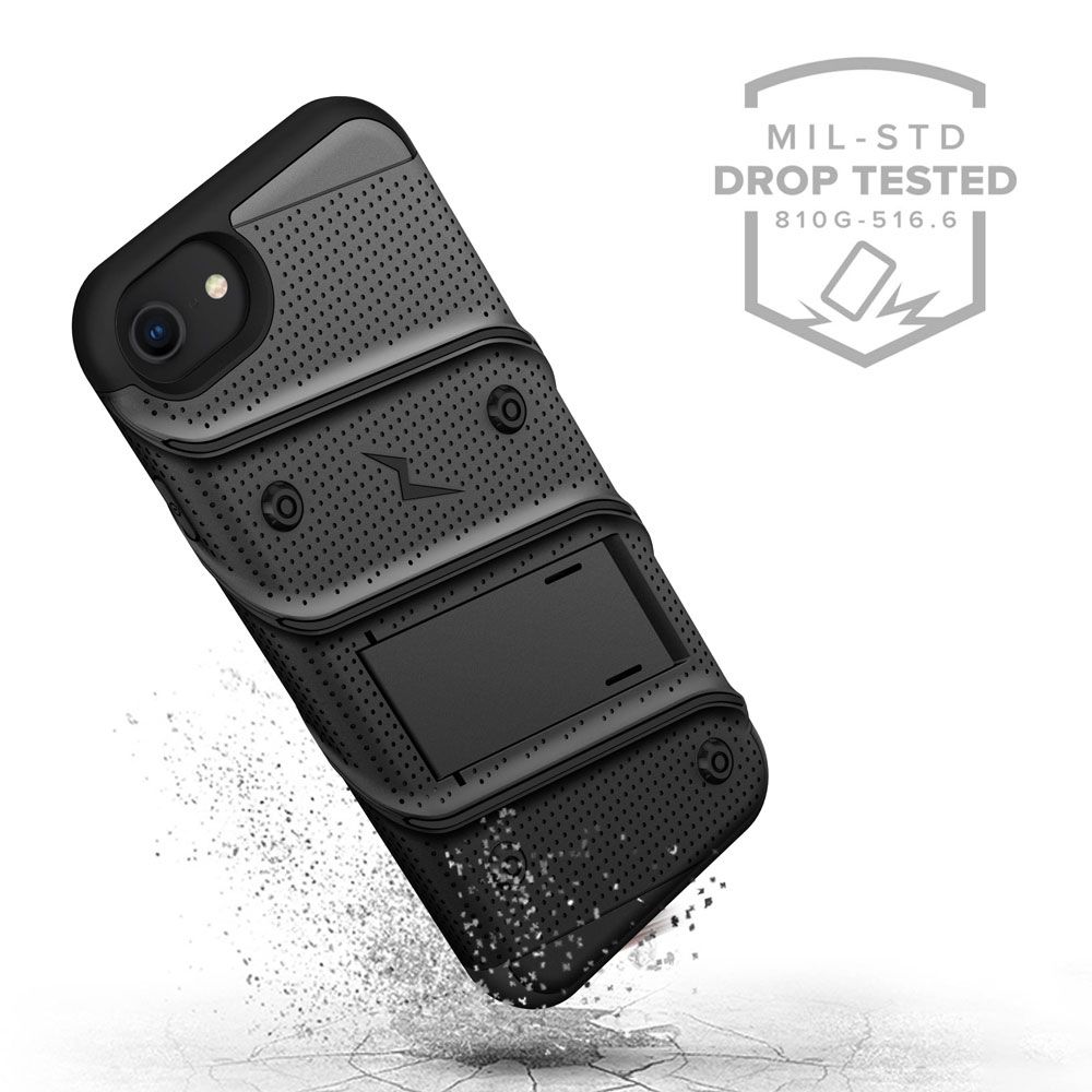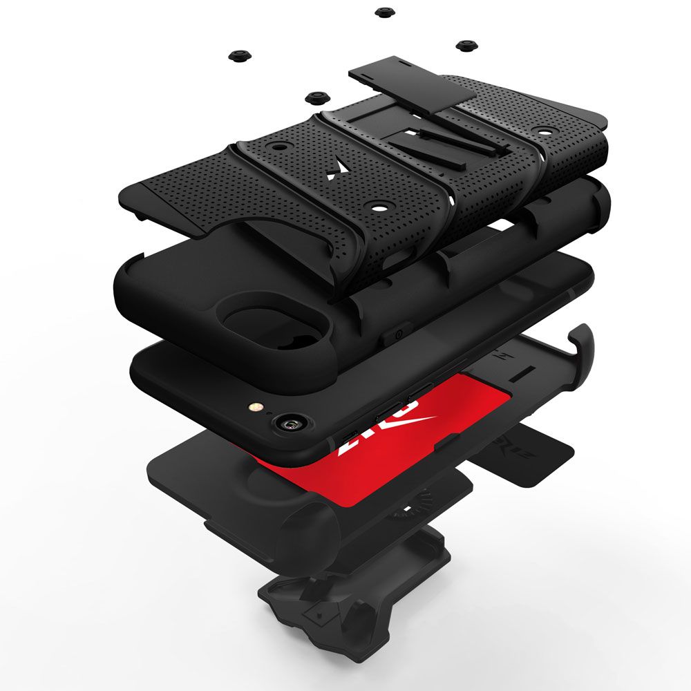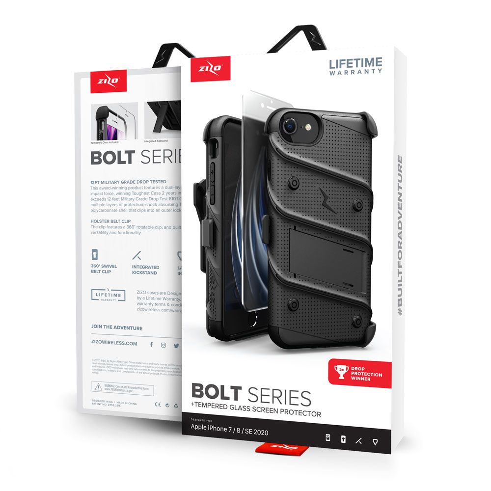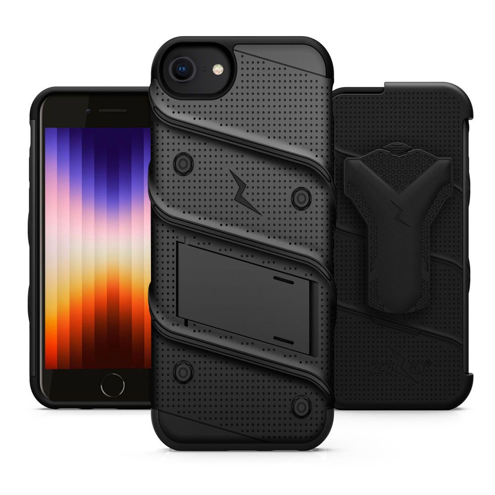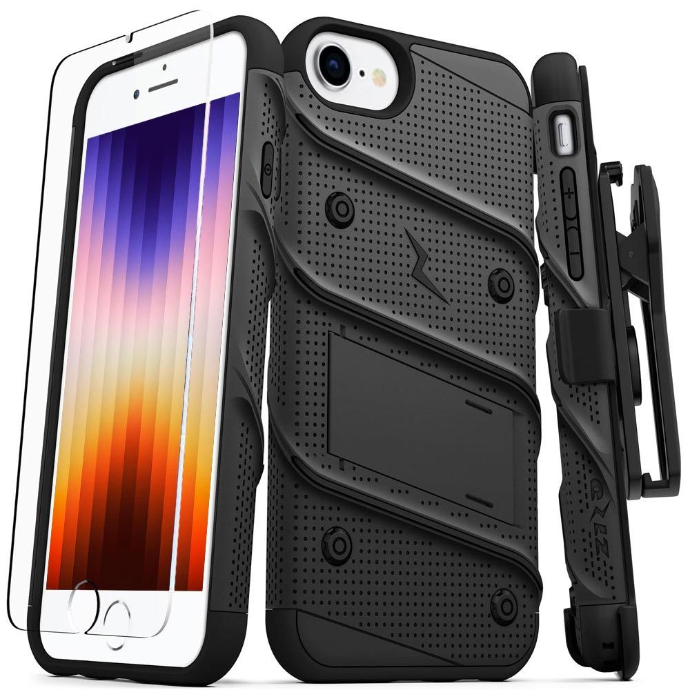 HOHE QUALITÄT: Sehr hochwertige Handyhülle der Marke ZIZO für Apple iPhone SE (2022) inklusive Schutzglas sowie Holster & Gürtelclip