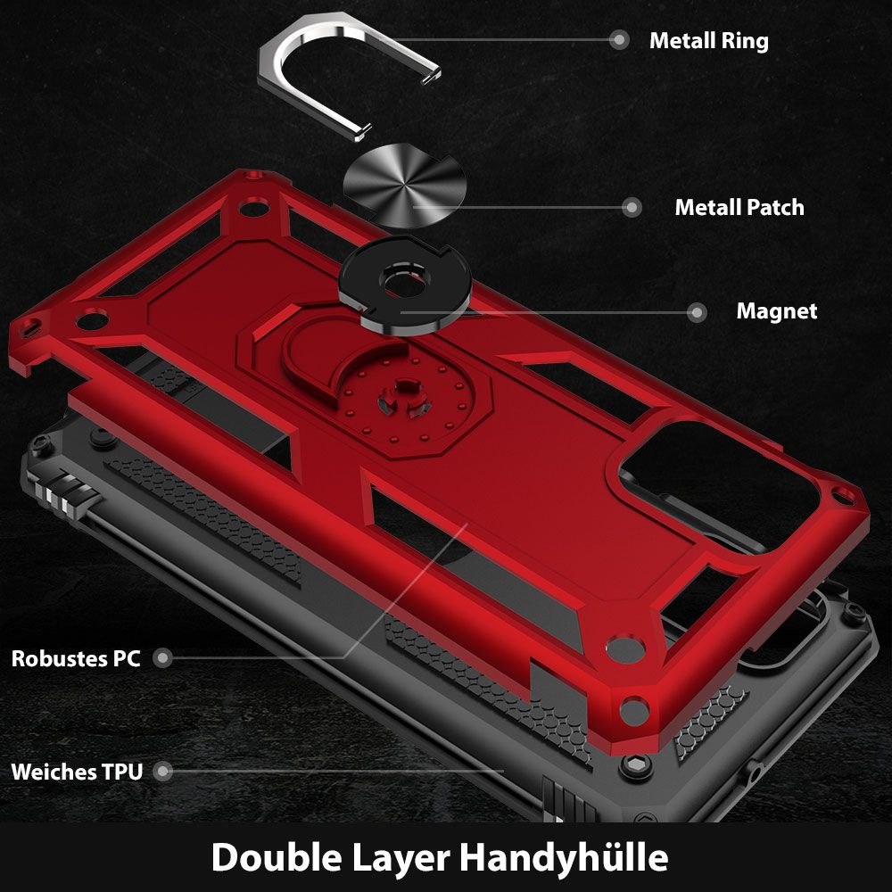 HOHE QUALITÄT: Sehr hochwertige, robuste Double Layer Handyhülle für Samsung Galaxy A51 mit schicker Optik sowie 360° drehbaren Ringhalter