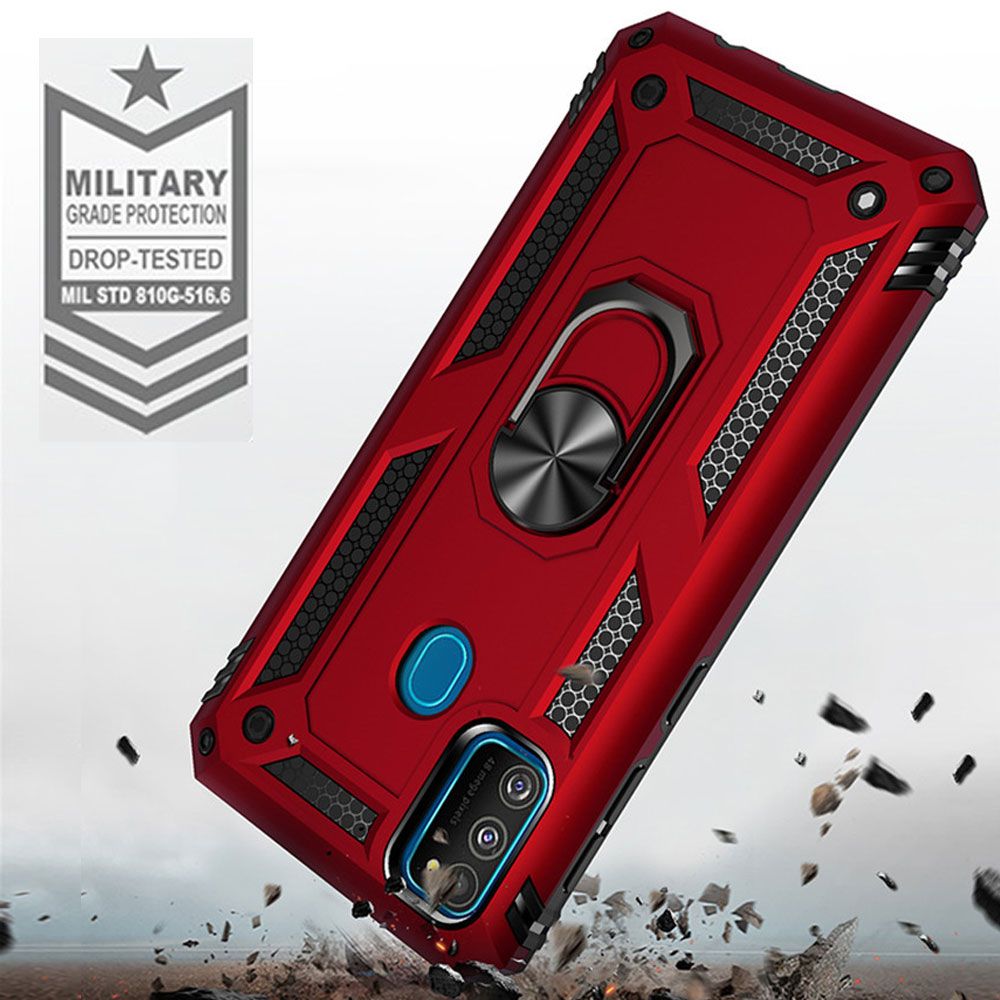 HOHE QUALITÄT: Sehr hochwertige, robuste Double Layer Handyhülle für Samsung Galaxy M21 mit schicker Optik sowie 360° drehbaren Ringhalter